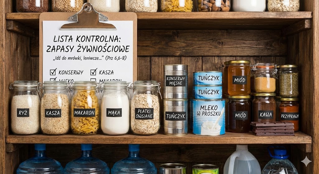 LISTA KONTROLNA: ZAPASY ŻYWNOŚCIOWE **„Idź do mrówki, leniwcze, patrz na jej drogi i bądź mądry: nie ma ona wodza (…) a w lecie gromadzi swą żywność” (Prz 6,6-8)** Tworząc zapasy, kieruj się zasadą: **„Kupuj to, co jesz, i jedz to, co kupujesz”**. Unikniesz marnowania jedzenia i pieniędzy.  1. Fundament: Produkty