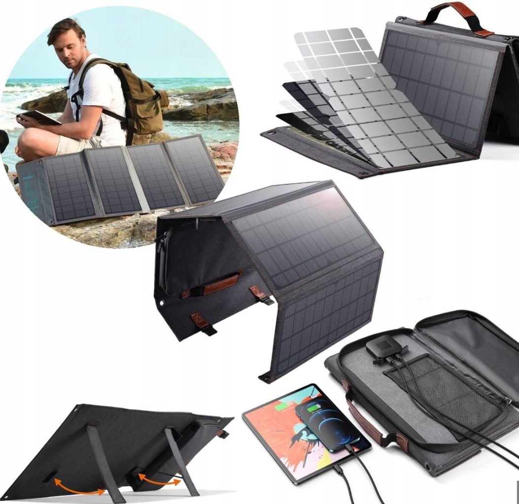 Składana ładowarka solarna, która po złożeniu jest bardzo podobna do torby na laptopa. Na jej obudowie znajduje się pakowna kieszeń, wygodna raczka i zaczepy umożliwiające złożenie jej w poręczną torbę. Wewnątrz znajdują się panele solarne pokryte materiałem PET. Są odporne na wodę, kurz i wysoką temperaturę, więc doskonale sprawdzą się w czasie podróży. Dodatkową zaletą są nóżki, które umożliwiają ustawienie rozłożonej ładowarki pod kątem, aby docierały do niej promienie słoneczne z konkretnego kierunku.